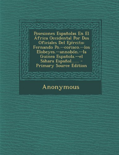 Download PDF Posesiones Espanolas En El Africa Occidental Por DOS Oficiales del Ejercito: Fernando Po.--Corisco.--Los Elobeyes.--Annobon.--La Guinea Espanola.--El Sahara Espanol...... - Primary Source Edition Online - From the worldwide bestselling team of ... Read online or download eBook PDF Posesiones Espanolas En El Africa Occidental Por DOS Oficiales del Ejercito: Fernando Po.--Corisco.--Los Elobeyes.--Annobon.--La Guinea Espanola.--El Sahara Espanol...... - Primary Source Edition Kindle in PDF, EPUB, MOBI, ...